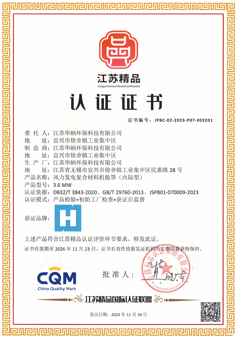 江蘇華納環保科技有限公司座落于全國環保產業之鄉-江蘇省宜興市,地處滬、寧、杭等距離的中心地帶,交通便利。注冊資本7066.66萬人民幣,公司主要是從事玻璃鋼復合材料、環保設備的設計、開發、制造、銷售于一體的科技型企業,是國家高新技術企業,國家專精特新小巨人企業,主要產品風力發電機艙罩、導流罩,廢氣廢水處理環保設備。